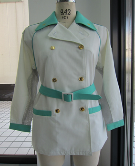 スッキリとしたデザインです。 ミントグリーンとストライプの組み合わせに フロントはダブル仕様でベルトで カチットラインを演出いたしました。
