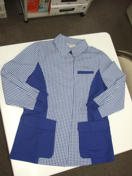 台衿付のシャツ&ジャケットタイプです。 プリンセスラインと、フライス付ポケットが 女性らしさとかわいさを演出します。