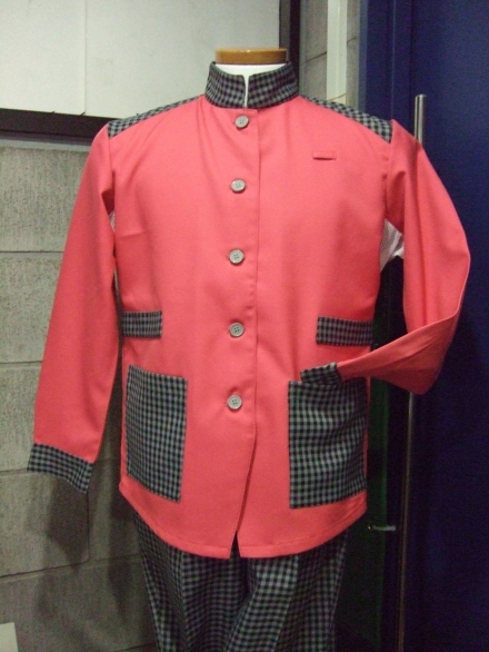 スタンドカラーをさらにしっかりとし、 その分、JKの袖はモーニングカットで Rラインのやさしさをデザインしたものです。