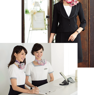 デザイン企画から、生地選び、生産、納品後の追加注文やアフターフォローまで、制服・ユニフォームのことなら全て当社にお任せください。